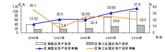 "十一五"期间区属固定资产投资及增速