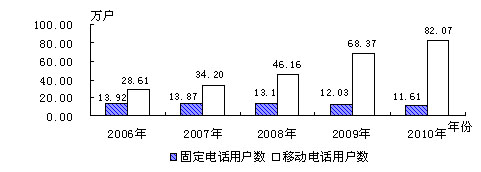 全区完成邮政业务总量3624万元,同比增长23.48%。通讯部门业务总量完成4.06亿元,增长15.59%。全区拥有移动电话用户82.07万户,同比增加13.7万户,增长20.03%;固定电话用户11.61万户,同比下降3.54%,其中农村用户达6.82万户,同比下降8.31%;联网用户2.23万户,同比增加0.34万户,增长18.17%。