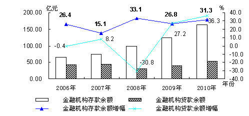 "十一五"期间全区金融存贷款余额及增幅