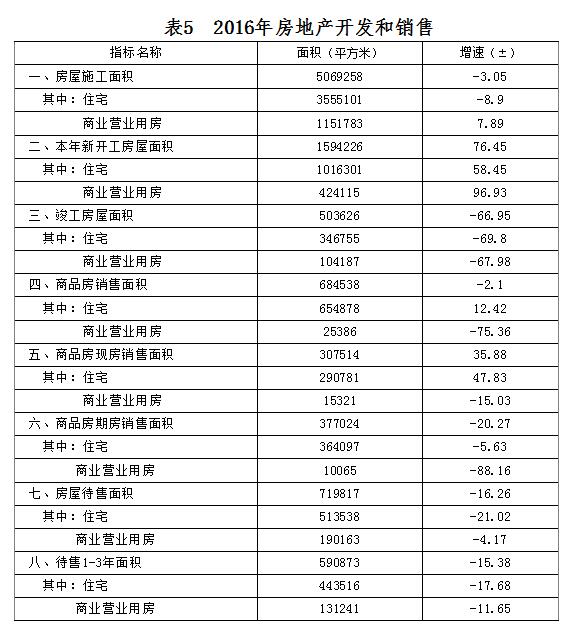 2016年末全市共有房地产开发企业80家,比上年增加2家,完成商品住宅投资41.46亿元,增长26.32%;商业营业用房投资16.02亿元,增长73.33%。