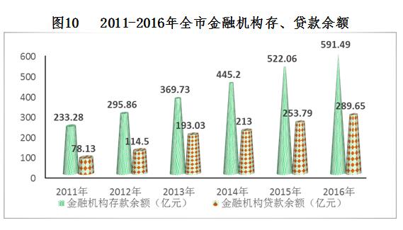 年底全市金融机构各项存款余额591.49亿元,比年初增加69.4亿元,增长13.3%,住户存款余额284.4亿元,比年初增加30.89亿元,增长12.2%。金融机构各项贷款余额289.65亿元,比年初增加35.86亿元,增长14.1%,其中住户贷款55.26亿元,比年初增加9.73亿元,增长21.4%。